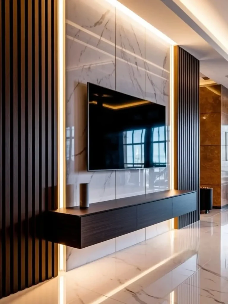 ۱) دیوار تلویزیون لاکچری یعنی حتماً مرمر و سنگ گران؟