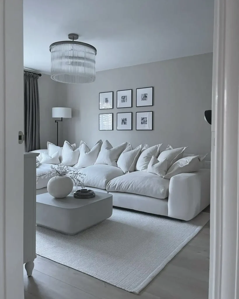 مینیماله، ولی سرد نیست؛ بیشتر شبیه اینه که «همه چی رو کنترل دارم، حتی کوسنهام همیشه پفدارن». مبل سفید اینقدر بالغ و بیزحمت شیک، کم دیده میشه.