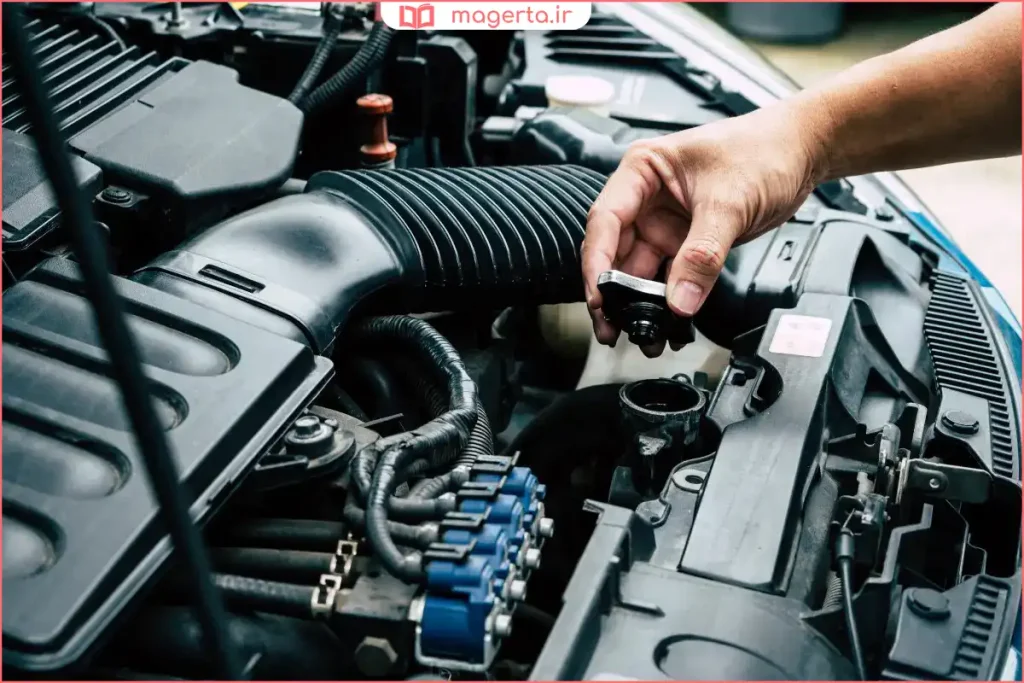 خنک کردن کامل موتور: حتماً اجازه دهید موتور خودرو کاملاً سرد شود. کار با سیستم خنککننده داغ میتواند باعث سوختگی شدید شود.